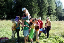 Алекс.Лес Пожалуй первое задание, в котором команды полностью сообразили, что правая нога это у Слона, а не у его частей. И каждая команда выполнила это задание по своему. С трудом, но левая часть Слона согда поднять правую почти на руки.